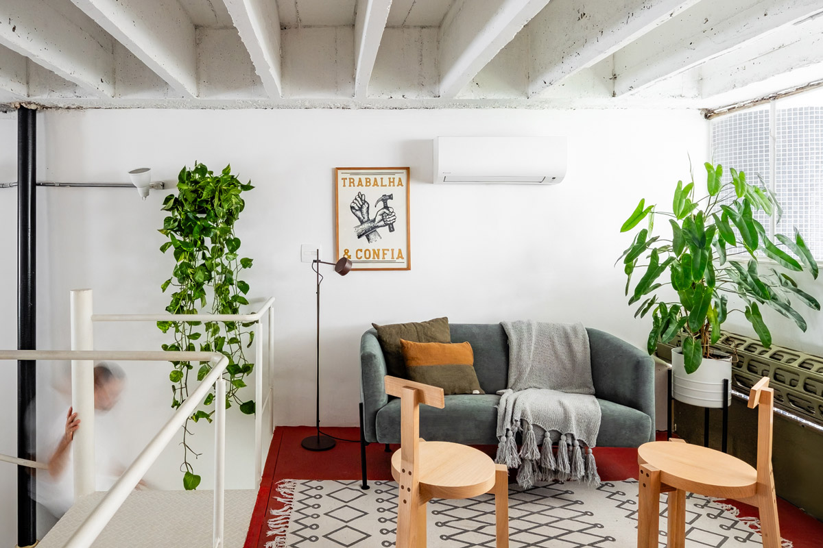 Marcenaria colorida e concreto descascado trazem personalidade à apartamento nos Jardins -